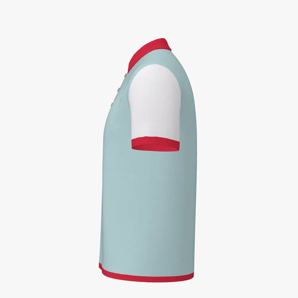 Men's Jacquard Short Sleeve Polo | 12 GG | Light Blue | Red | White |