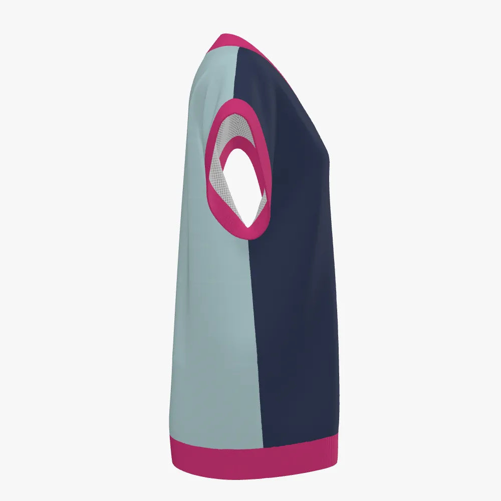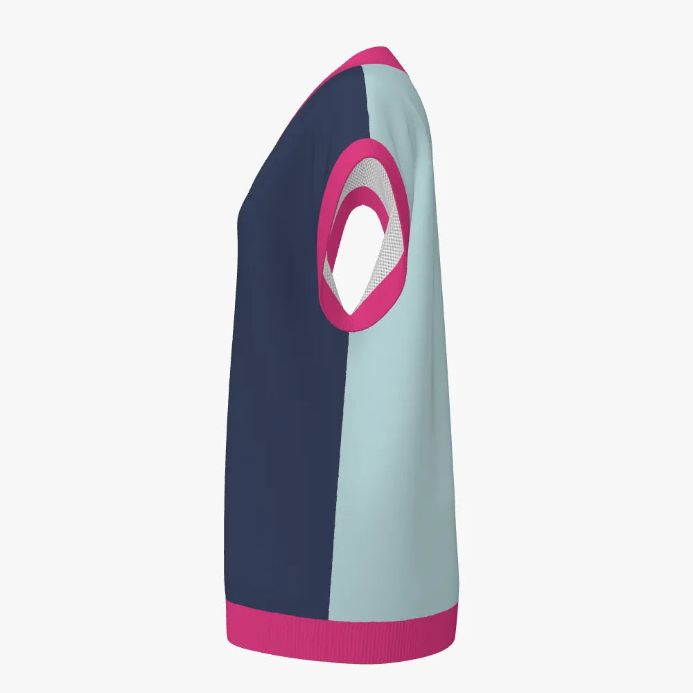 Women's Jacquard Over-sized Vest | 12 GG | Navy | Light Blue | Fuchsia |