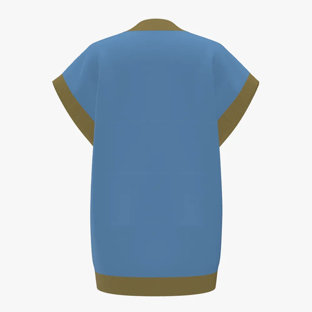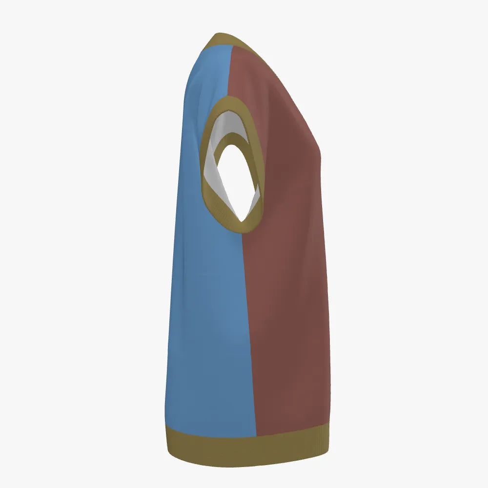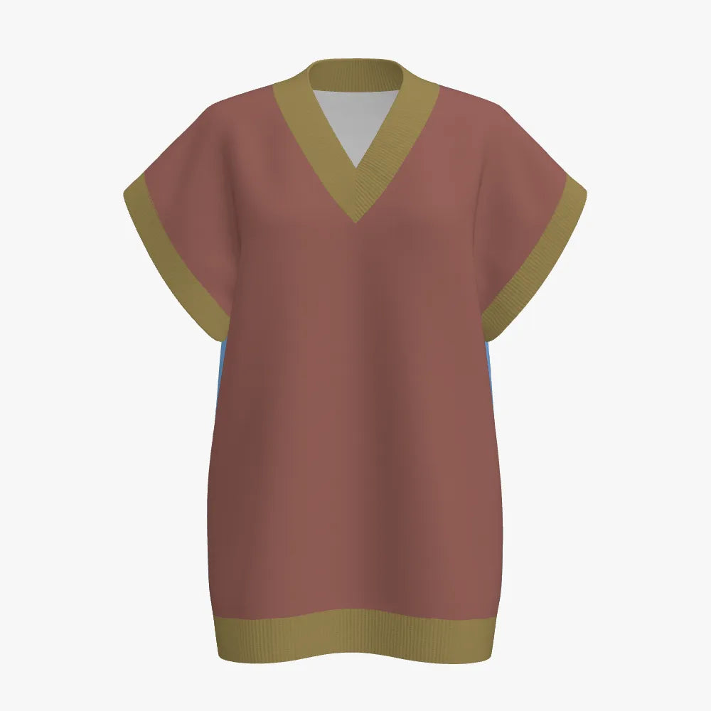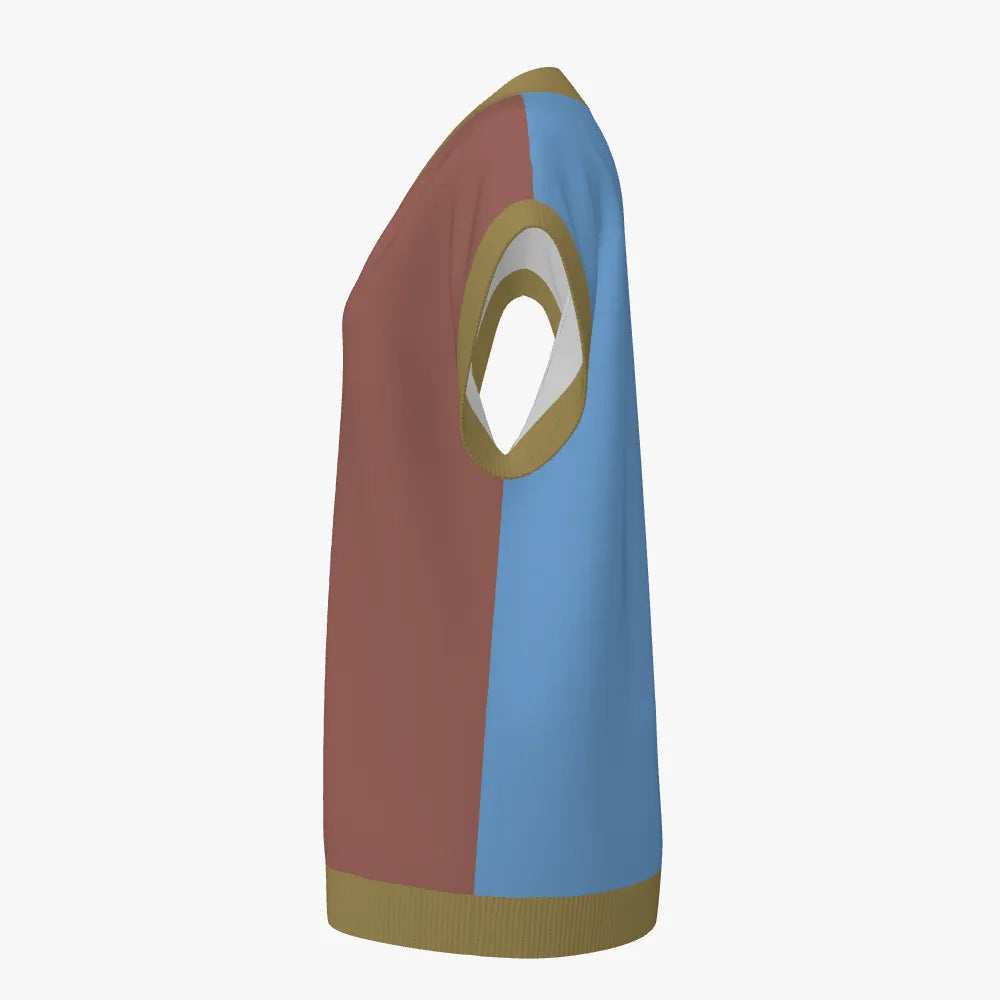 Women's Jacquard Over-sized Vest | 12 GG | Brown | Sky Blue | Gold |